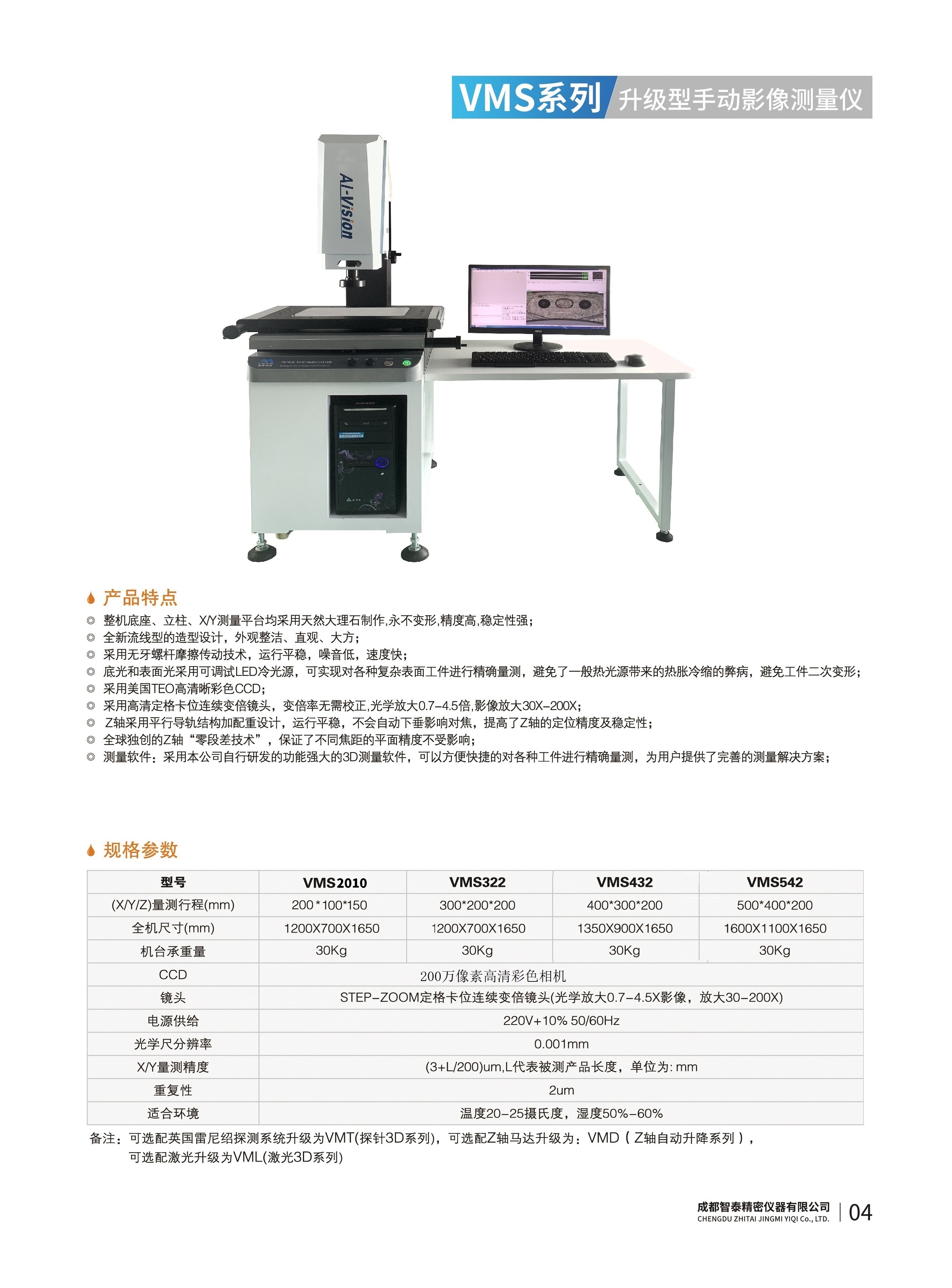 成都智泰精密儀器有限公司專注于精密測量儀器,人工智能,智能制造領(lǐng)域,專業(yè)從事智能視覺自動化檢測解決方案的貿(mào)易型企業(yè)。公司成立于2011年,位于天府之國成都,現(xiàn)有行業(yè)精英十余人,辦公倉儲面積200余平米。 公司主要產(chǎn)品為精密光學(xué)影像測量儀,精密輪廓形狀測量儀,精密機(jī)器人定位系統(tǒng),精密智能視覺尺寸檢測儀器,精密表面缺陷智能檢測設(shè)備,工業(yè)工程特種機(jī)器人。 公司憑借過硬的技術(shù)實(shí)力和產(chǎn)品方案,率先進(jìn)入智能視覺自動化檢測領(lǐng)域,推廣以精密智能視覺自動化檢測為基礎(chǔ)的機(jī)器人自動化應(yīng)用,公司不斷整合上下游的資源,擁有巨大的全產(chǎn)業(yè)鏈優(yōu)勢??蛻羧后w覆蓋了我國精密制造業(yè)的多數(shù)領(lǐng)域,包括航空、航天、軍工、汽車、新能源、光伏、食品,精密電子、精密機(jī)械、模具、PCB、LCD、五金、塑膠、醫(yī)療、教育、計(jì)量及科研院所等行業(yè)。 公司創(chuàng)新的產(chǎn)品能滿足生產(chǎn)與制造行業(yè)客戶的要求,訓(xùn)練有素的工程師能及時提供多種技術(shù)服務(wù),如解...